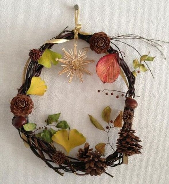 クリスマスに向けてこんな落ち葉リースもかわいいです!