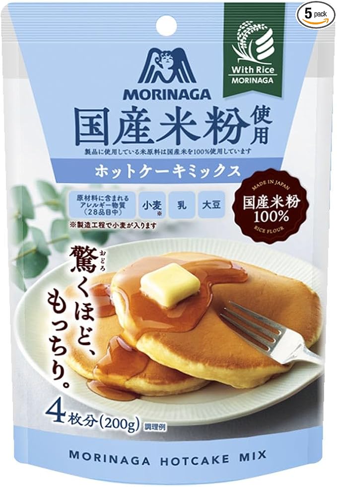 お菓子で有名な森永製菓より販売されている、森永製菓 国産米粉使用ホットケーキミックスは国産の米粉を100%使用しています。