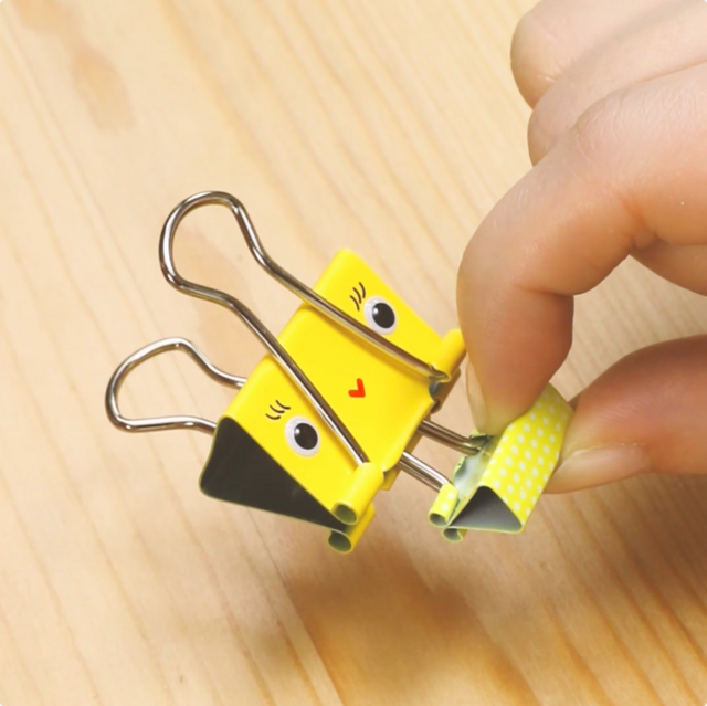 大きいクリップで、小さいほうのクリップのつまみ部分を挟みます。