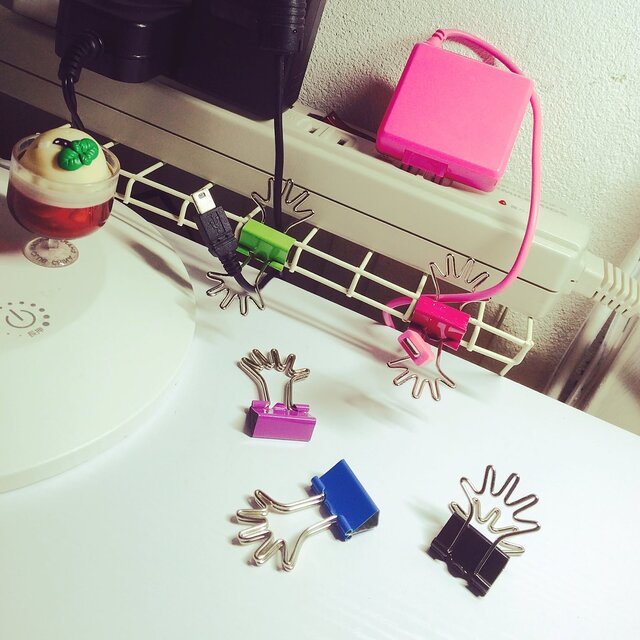 コードをダブルクリップの持ち手部分に通すだけです。あとはシールなどで目印をつけましょう。
